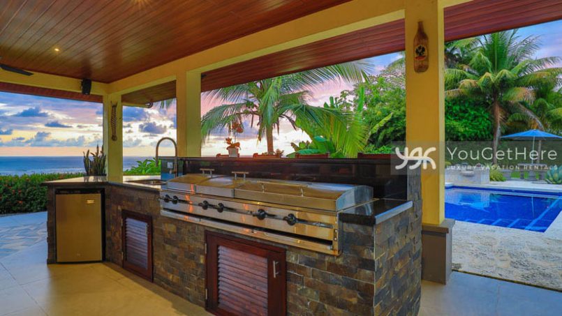 While you’re here, plan on spending all kinds of time in and around the infinity swimming pool, keeping a close eye on that river-to-sea combo view as well as the grill with all of the food on it. The barbecue is massive and forever yearning for someone to toss fresh mahi-mahi inside.
